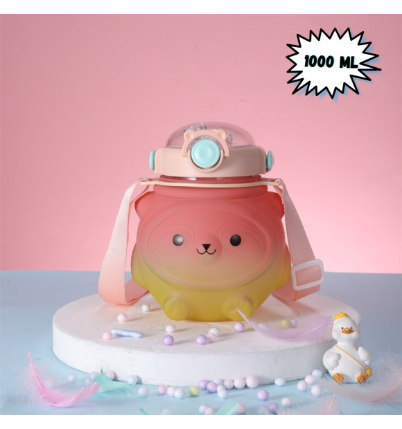 Garrafa Squeeze Ursinho Degradê com Adesivos 1000ml - Laranja