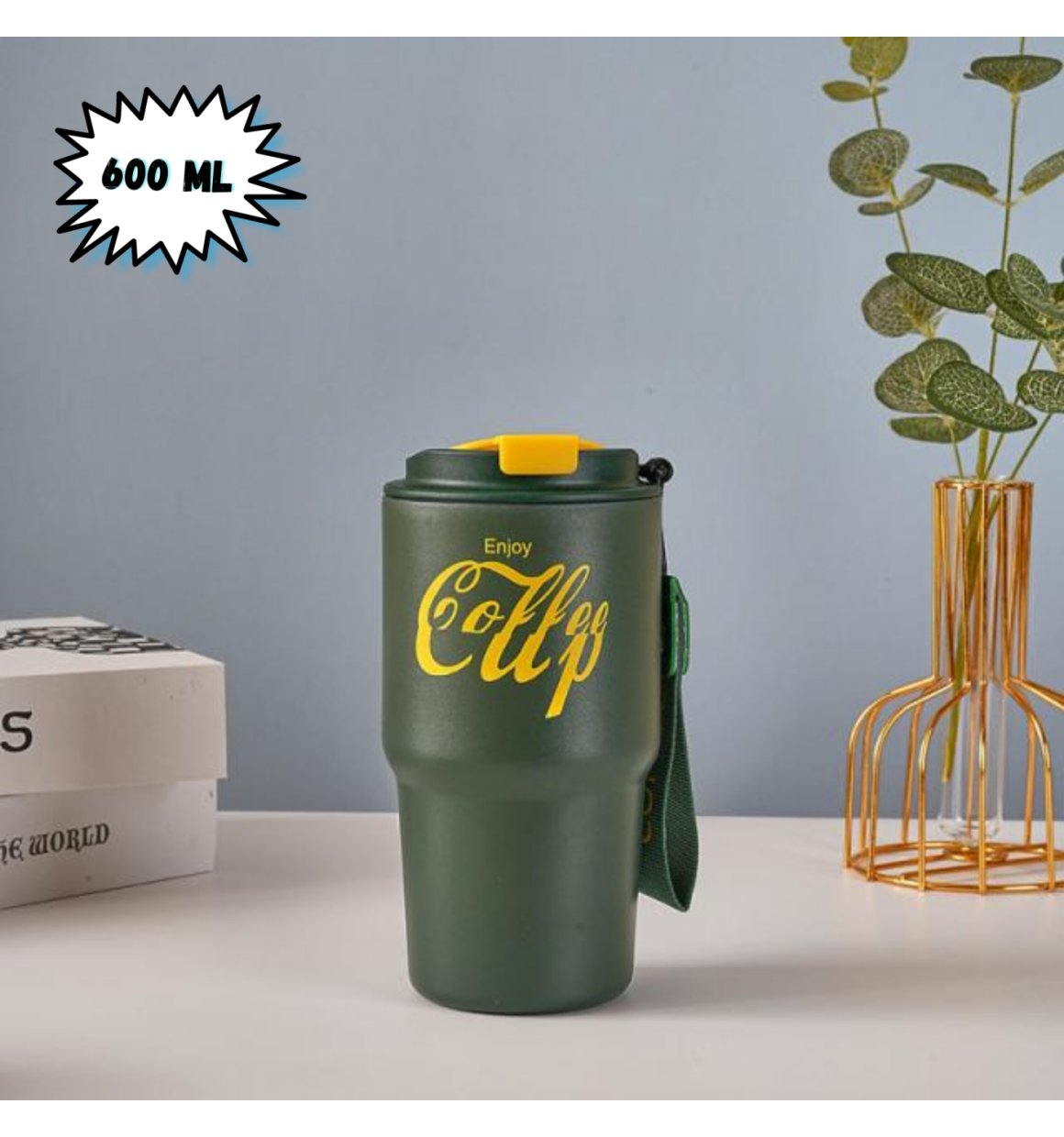Copo Verde Térmica de Inox com Tampa 600 ml "Enjoy Coffee Cup"
