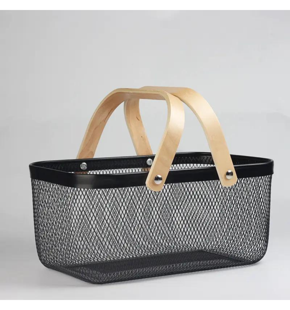 A Cesta / Fruteira Preta de Metal com Alça de Madeira - (G) RETANGULAR é perfeita para adicionar um toque de estilo e praticidade à sua cozinha, sala ou área de serviço. Sua estrutura metálica é robusta e confiável, enquanto a alça de madeira proporciona um contraste elegante.