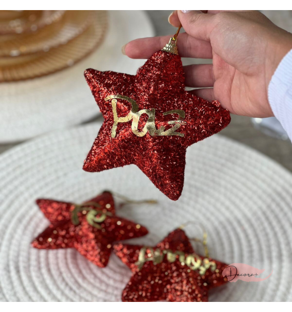 Enfeite de Natal Estrela Vermelha "Paz" - 12cm