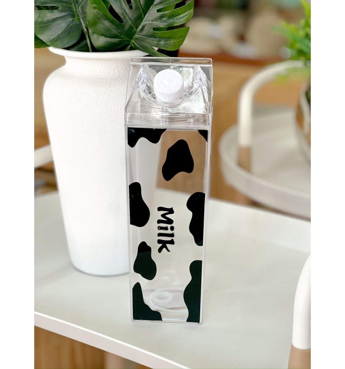 Cheia de estilo e super funcional, a Garrafa de Acrílico em formato de Caixa de Leite é perfeita para você! Com capacidade de 1000ml e uma vedação de borracha eficiente, garantindo que nada vaze e tudo fique fresco por mais tempo.