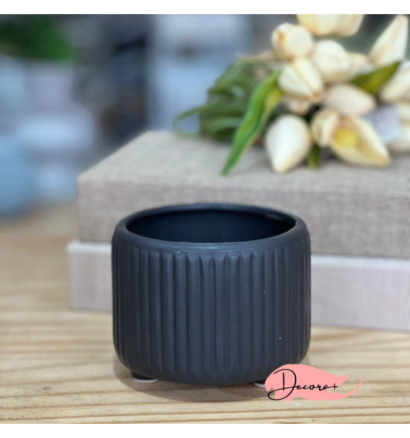 Vaso Canelado de Cerâmica Preto - 10,5cm X 8,5cm