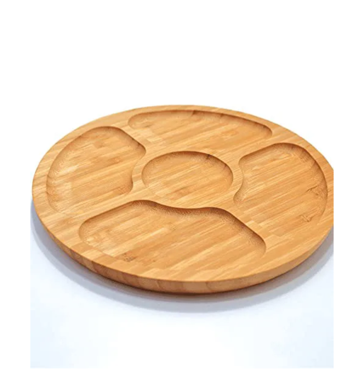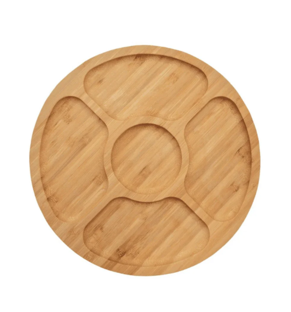 Petisqueira Bandeja De Bambu 5 Divisórias Formato Flor.