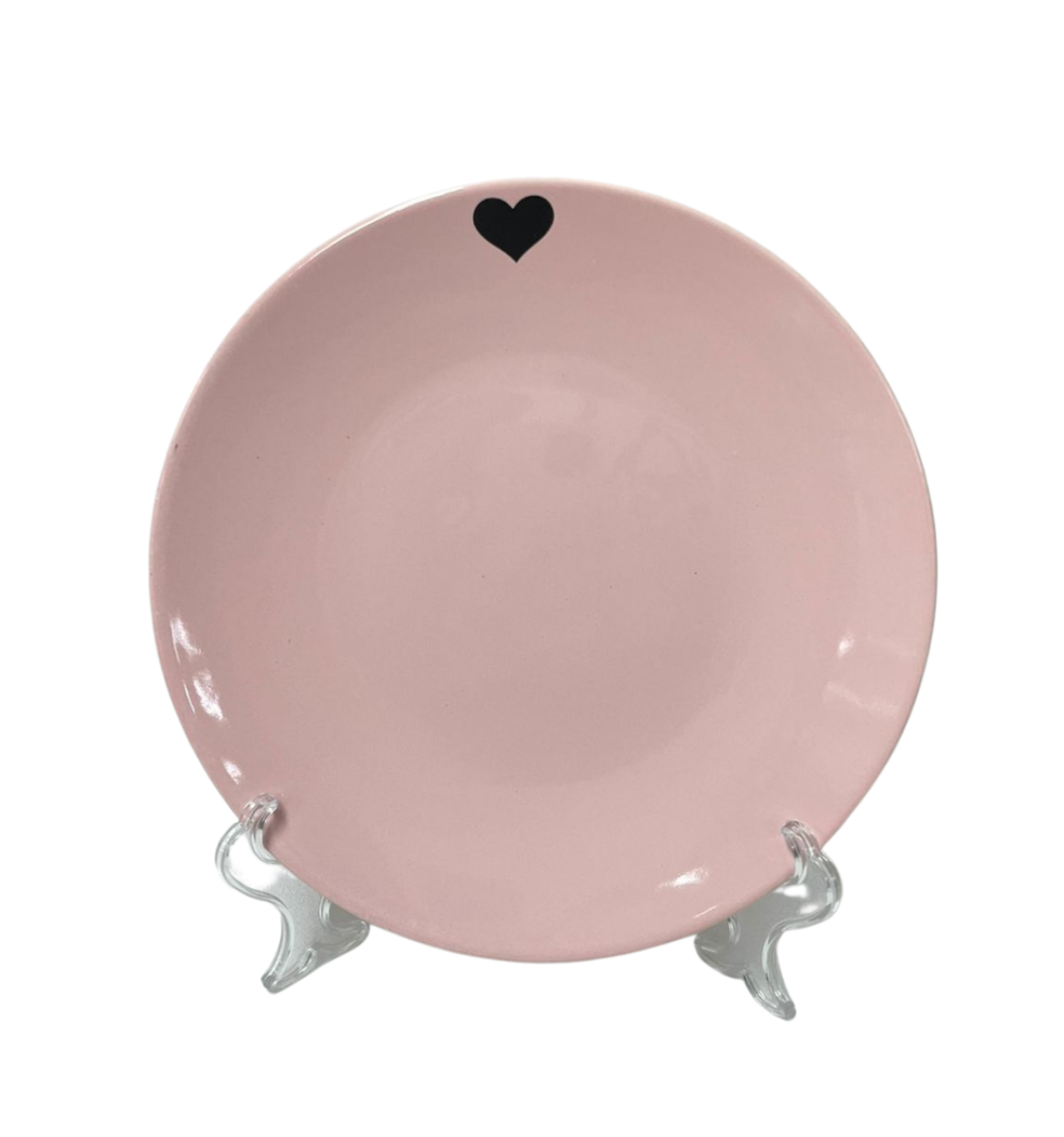 Prato Raso Rosa Grande com detalhe de Coração em Ceramica