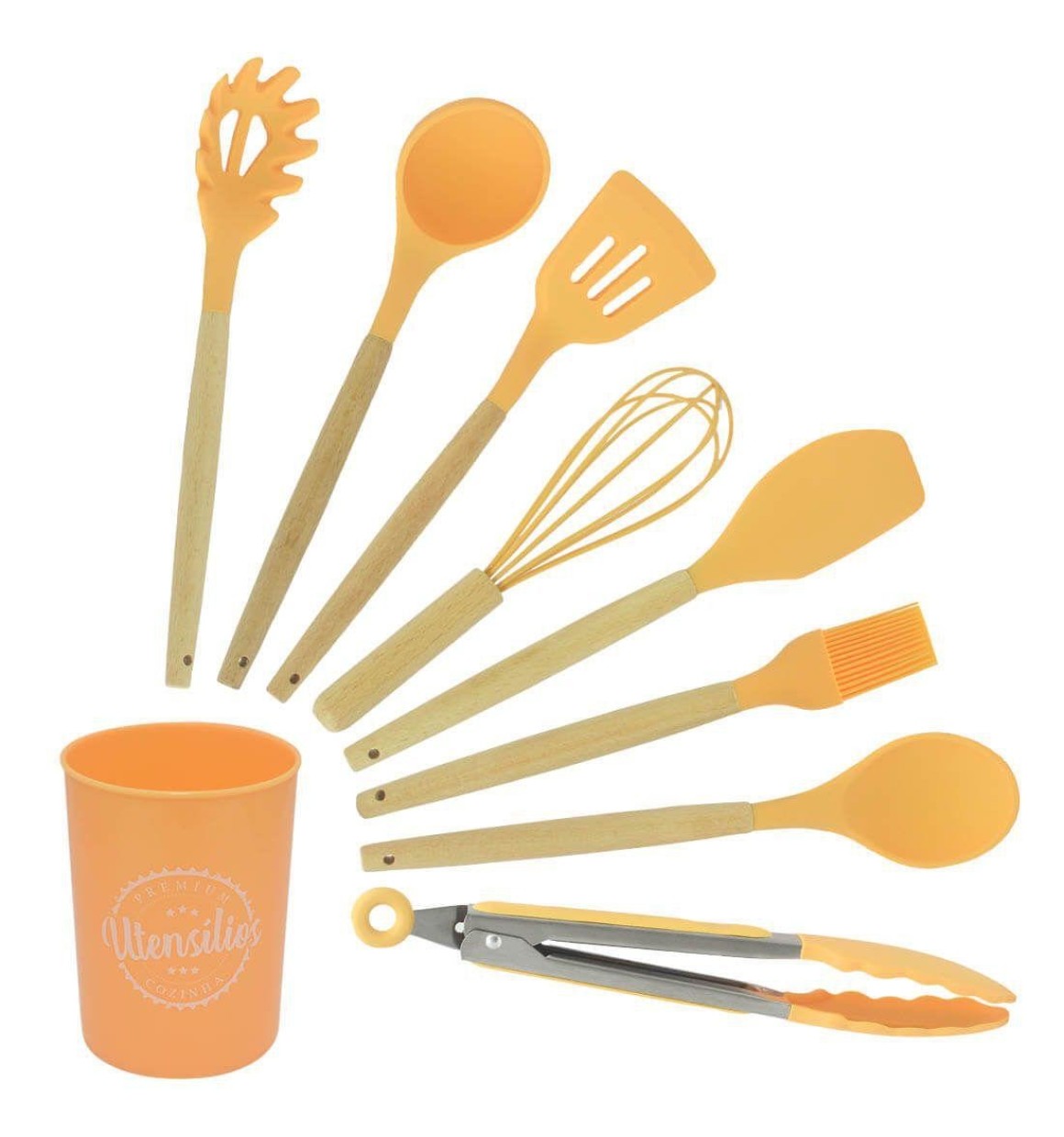Kit Utensilios de Silicone 9 peças - Amarelo