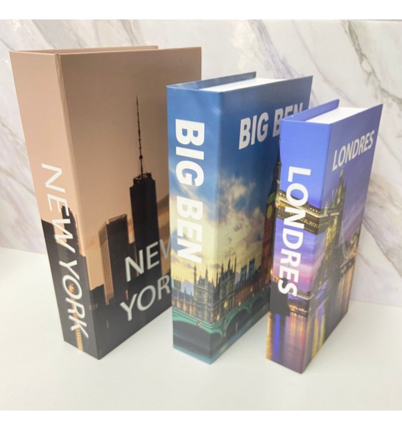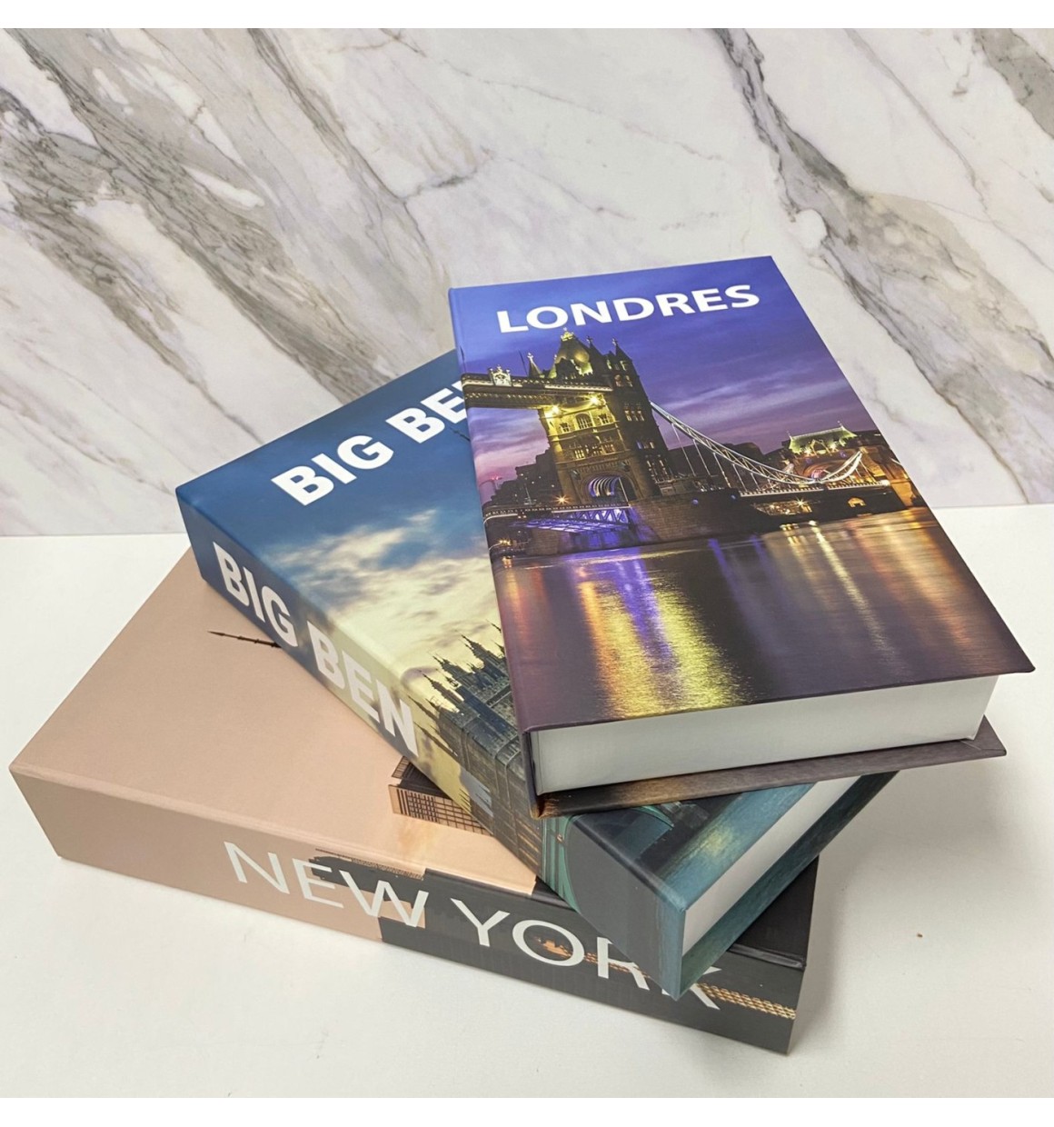 2. Caixa Livro Decorativa com 3 Peças New York Entardecer