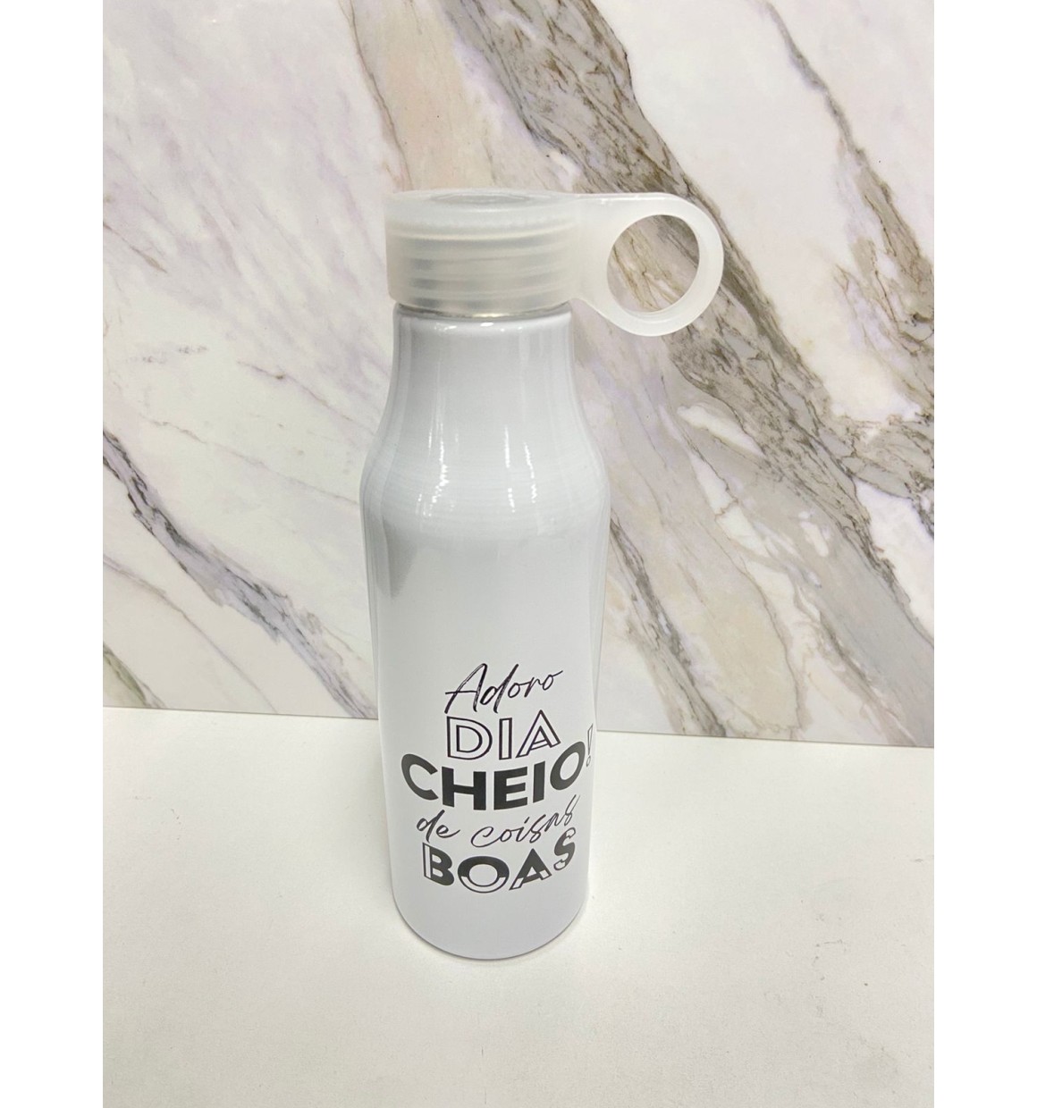 Garrafa de Aluminio Branca 550ml "Adoro Dias Cheios de Coisas Boas"