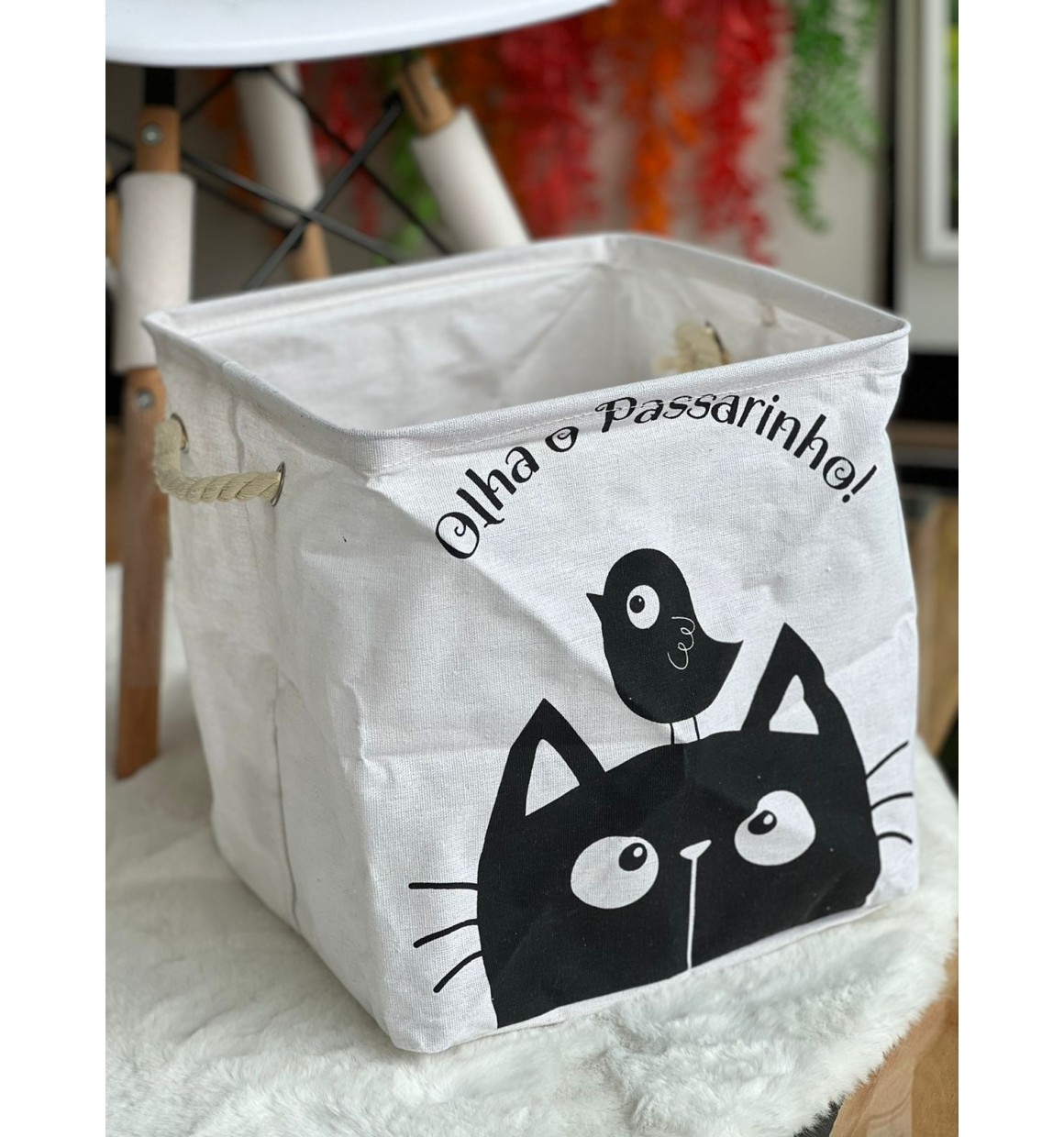 - Cesto Multiuso Infantil Dobravel Quadrado Com Alça sem Tampa - Desenho de "Olha o Passarinho