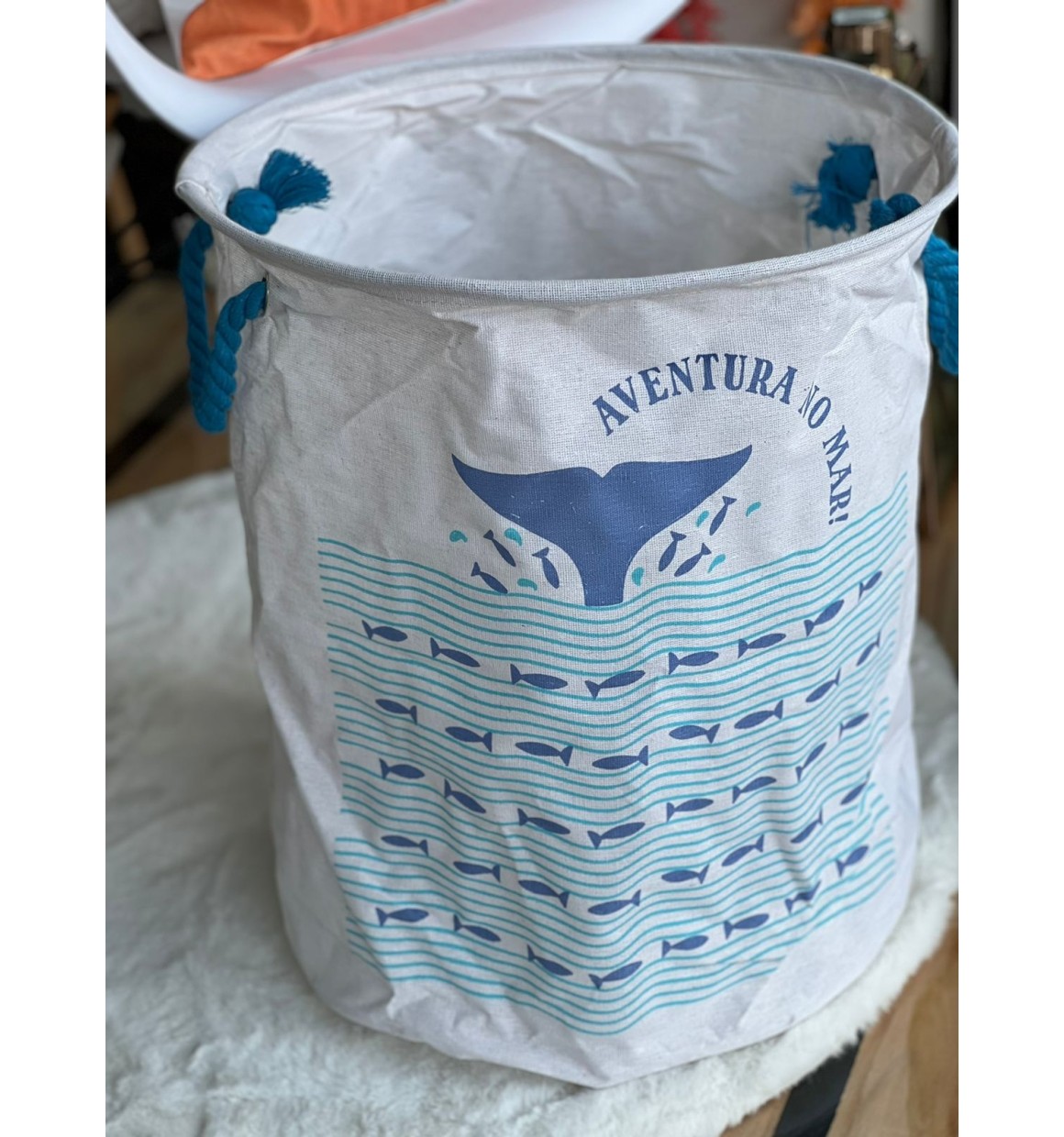 Cesto Multiuso Redondo Infantil Dobravel Com Alça sem Tampa - Rabo de Baleia