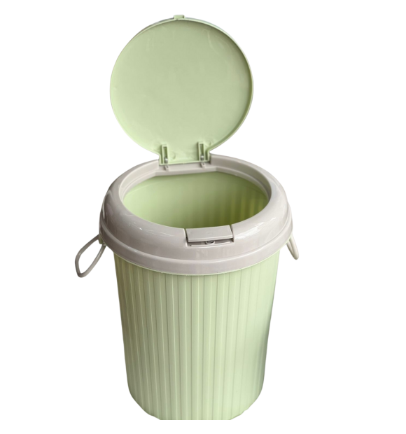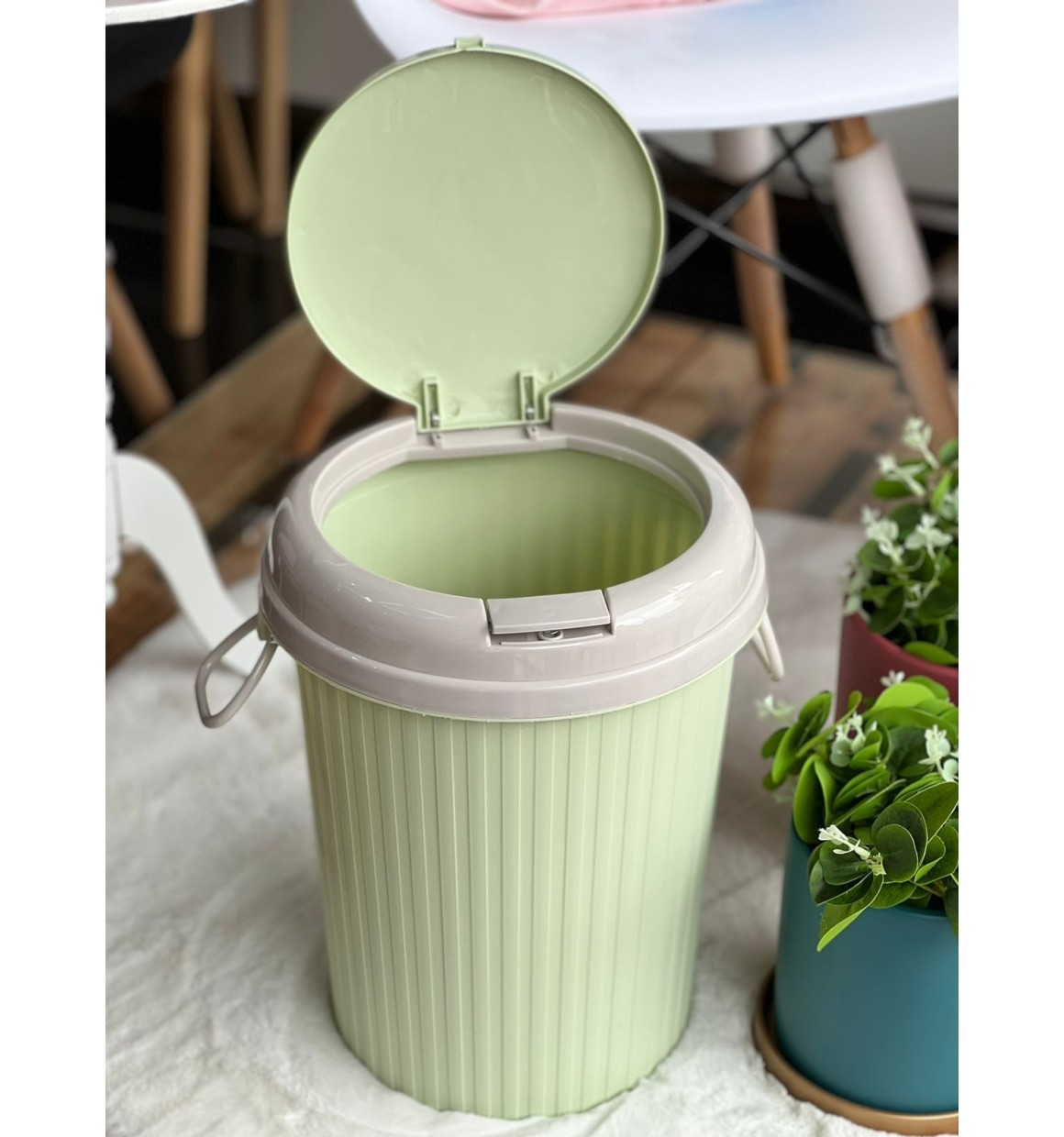 LIXEIRA VERDE DE PLÁSTICO COM TAMPA RETRÁTIL
