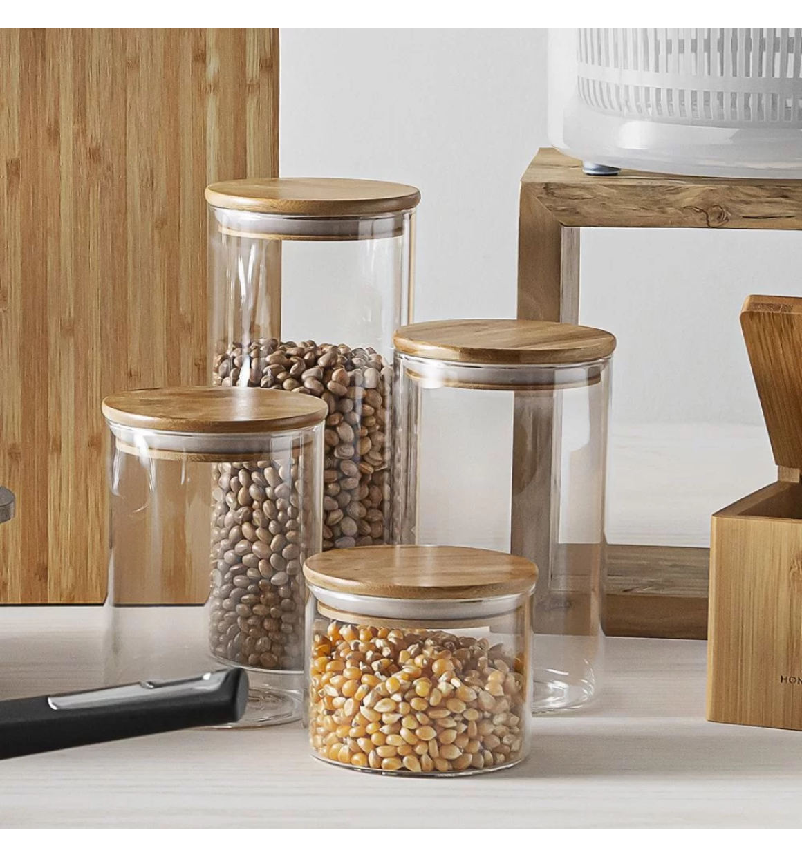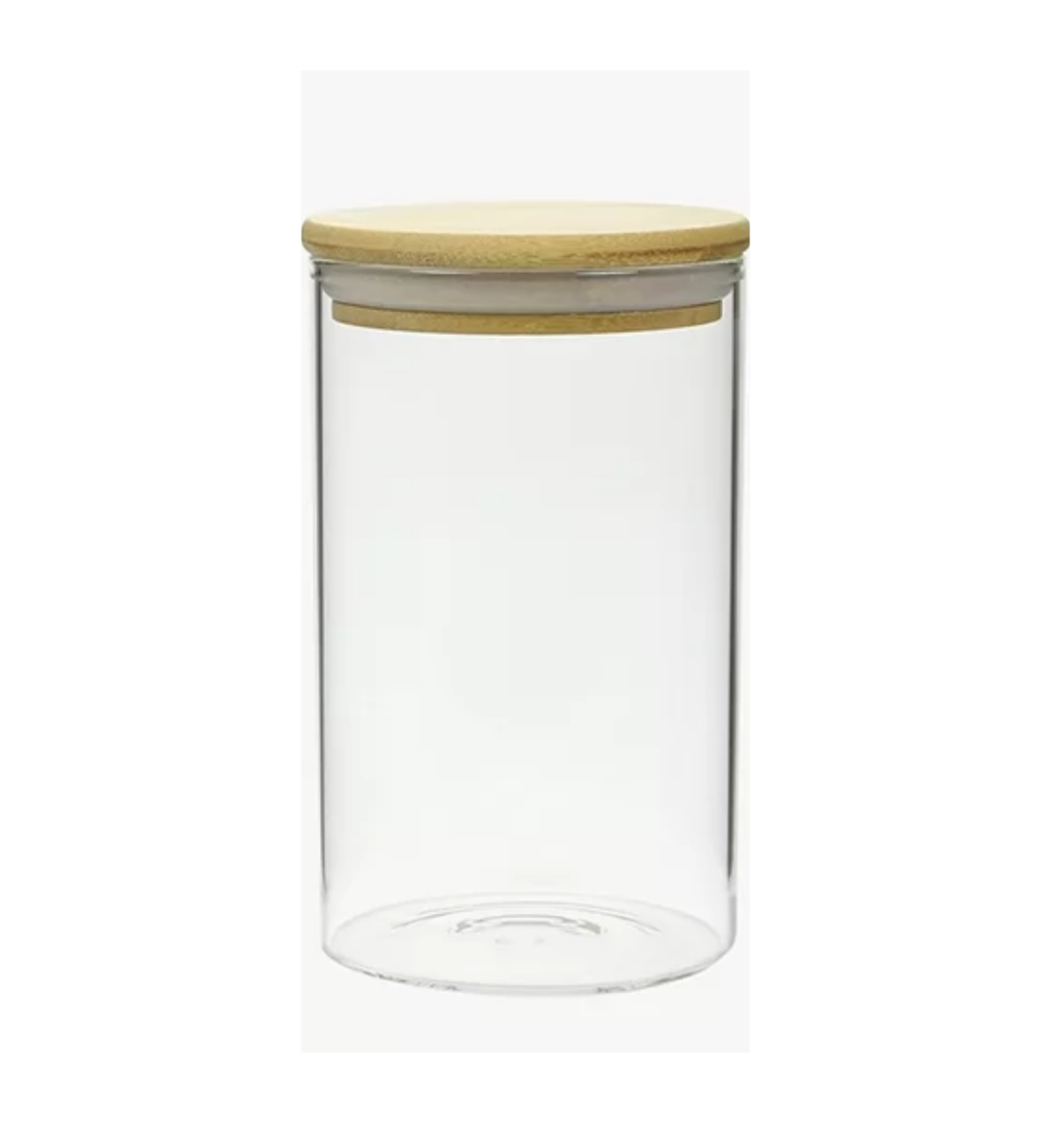 2. Pote Hermético de Vidro com Tampa de Bambu 600ml