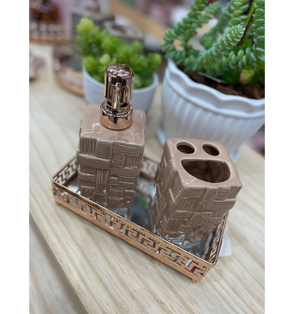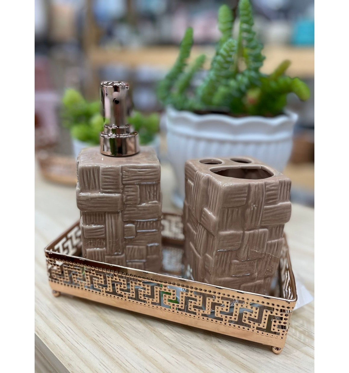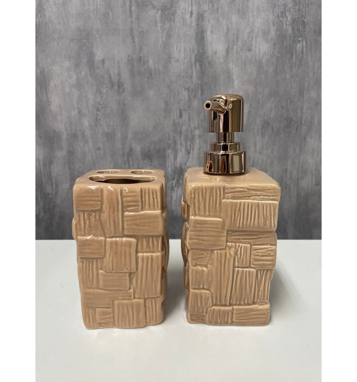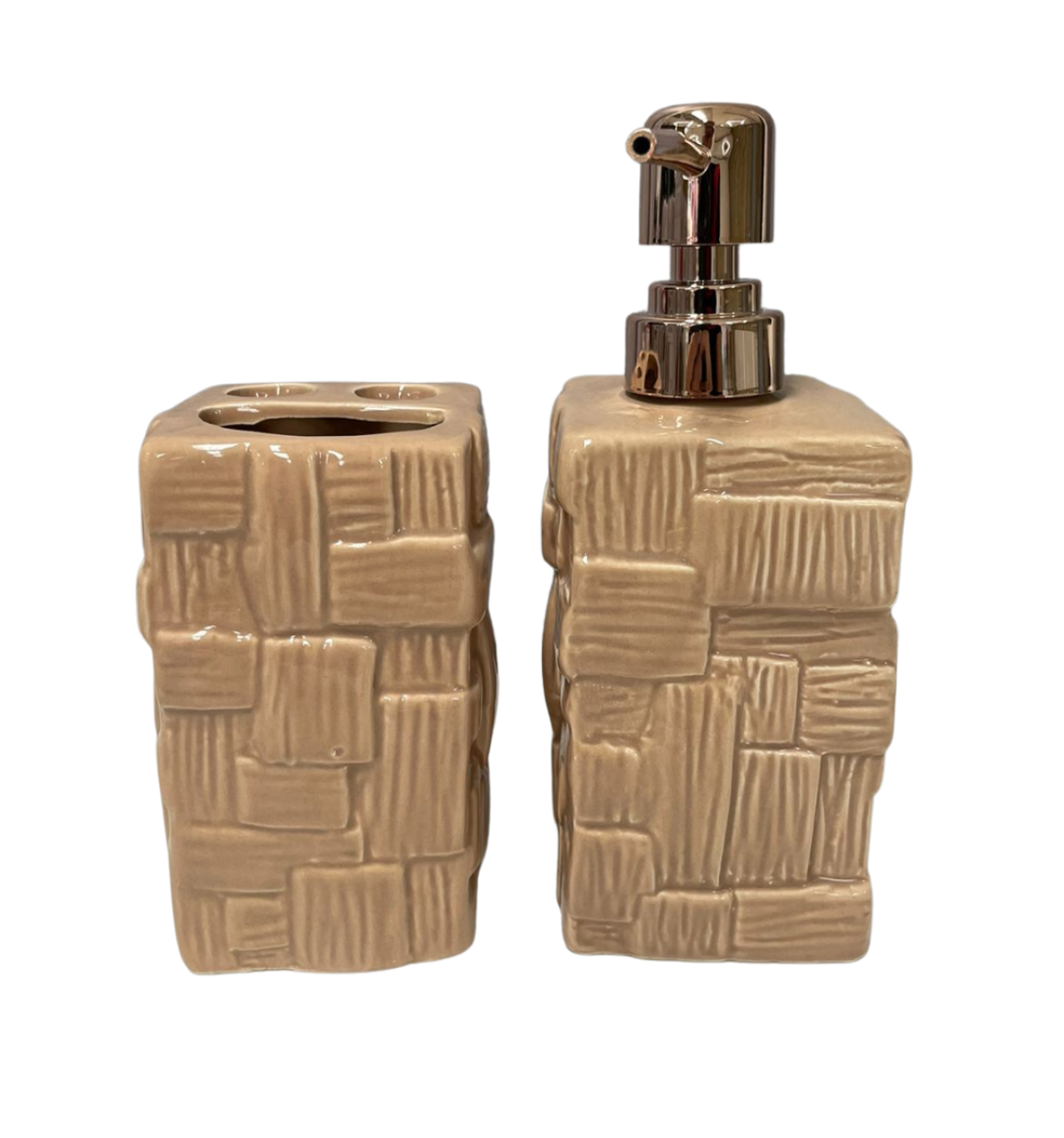Kit de Banheiro Marrom com 2 Peças Modelo Tijolo de Porcelana