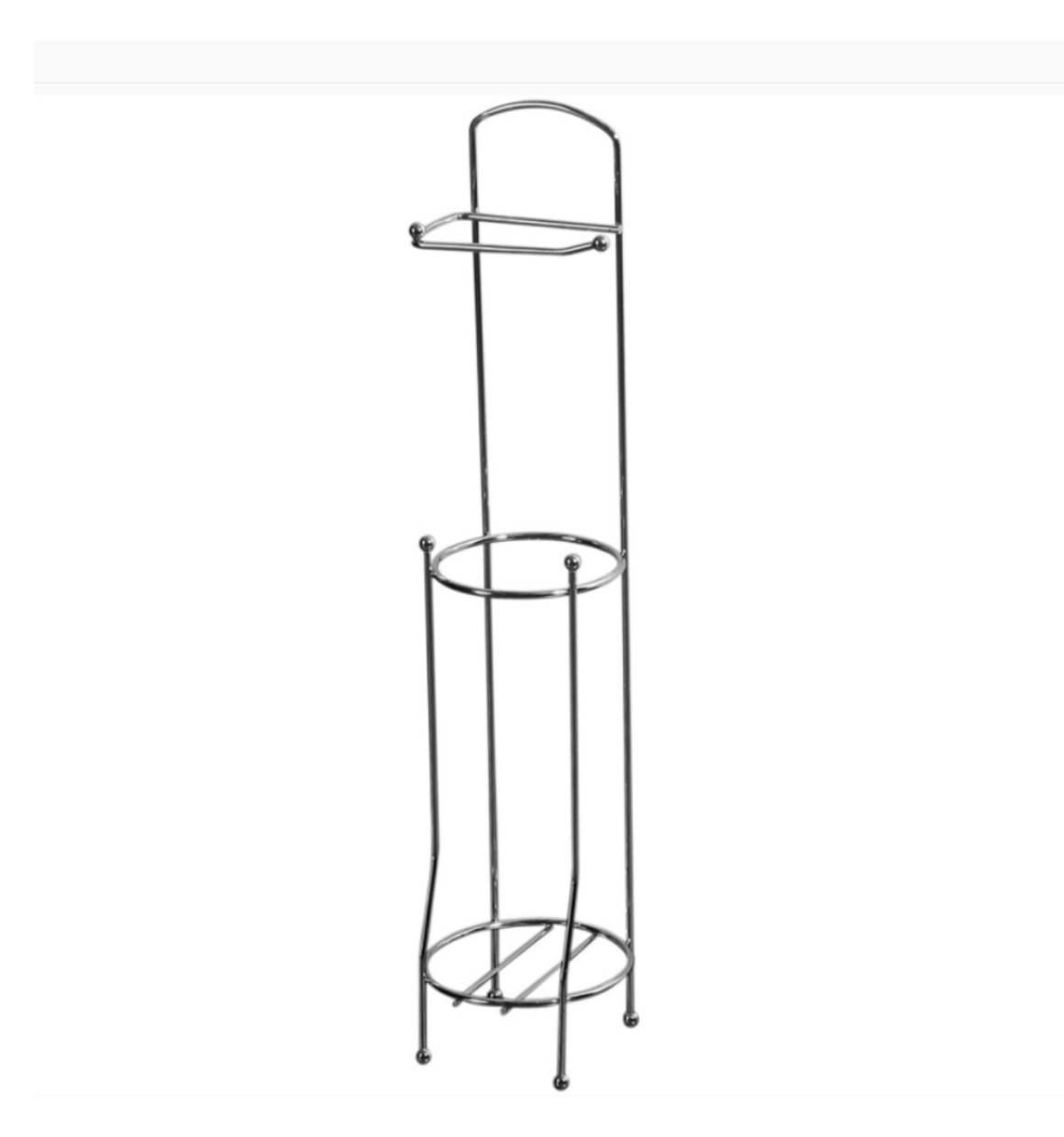 Suporte Prata Metal Para Papel Higiênico Altamente Resistente e Durável, Com Design Slim que se Adapta Facilmente a Diferentes Estilos de Banheiro. Possui rateleira Vazada na Base Para Suporte de Objetos.