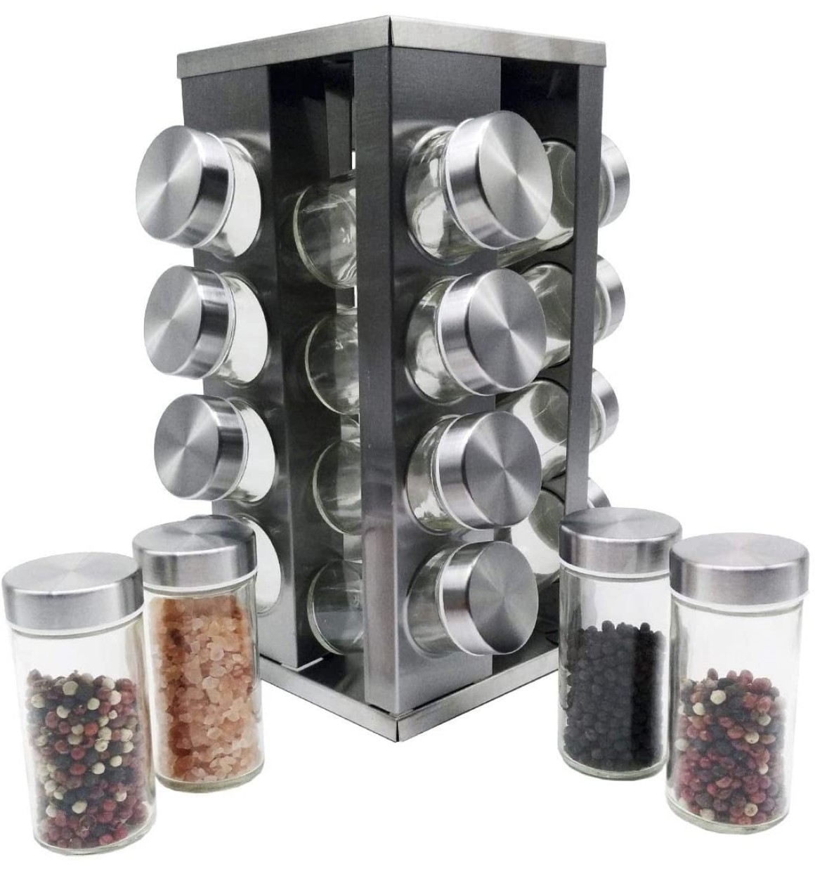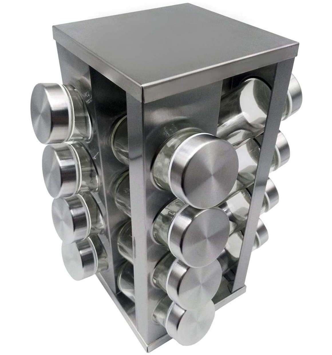 Jogo Porta Temperos de Inox Giratório Quadrado com 16 Potes