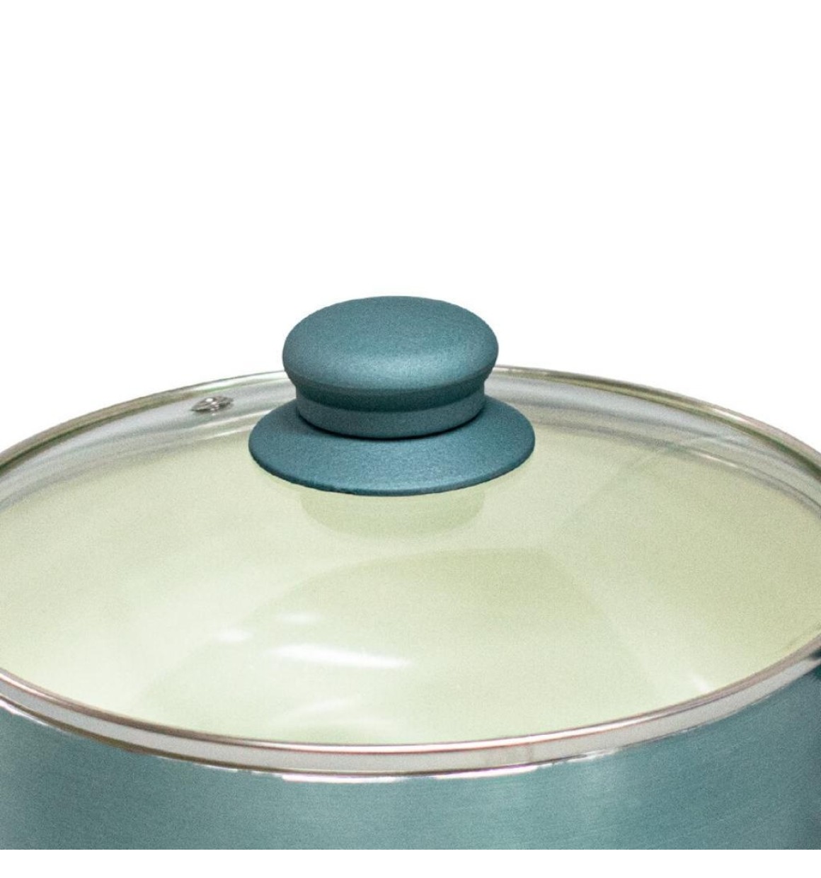 O Conjunto de Panelas Genebra Casambiente possui revestimento cerâmico e tampa de vidro temperado com bordas em aço inox e respiro para saída de vapor. Super moderno e elegante, este Conjunto de Panelas é ideal para qualquer cozinha. São 7 peças, sendo três caçarolas, duas panelas, uma frigideira e um fervedor, todos na cor azul e seu revestimento na cor creme. São práticas de usar, pois o revestimento dispersa melhor o calor melhorando a eficiência do cozimento e as alças de baquelite com revestimento em silicone evitam que ocorram acidentes.