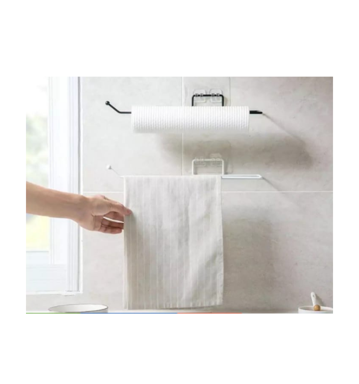 Suporte Preto Multiuso de Metal Para Parede com adesivo, não precisa furar a parede, sem barulho