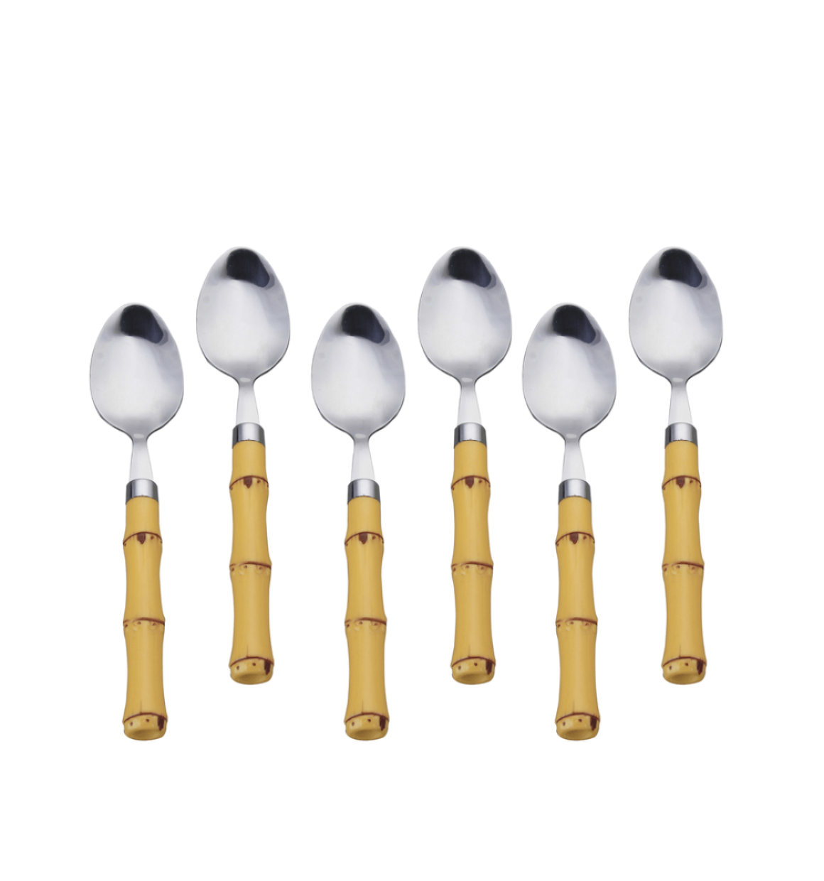 Jogo 6 Colheres Inox Com Cabo Plástico Bambu Natural.