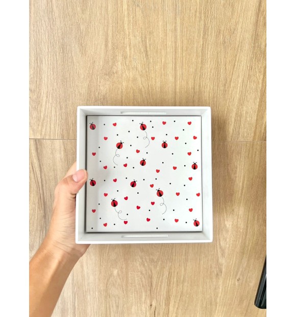 Bandeja em MDF com azulejo, Decorada com Joaninhas fofinhas. Fica uma graça na Decoração Cozinhas. Ótimo Presente para Amigos ou Familiares