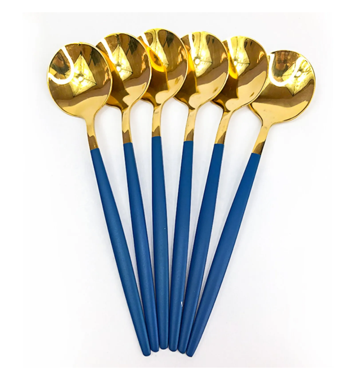 Jogo com 6 Colheres de  Chá  Slim Cabo  Azul.
