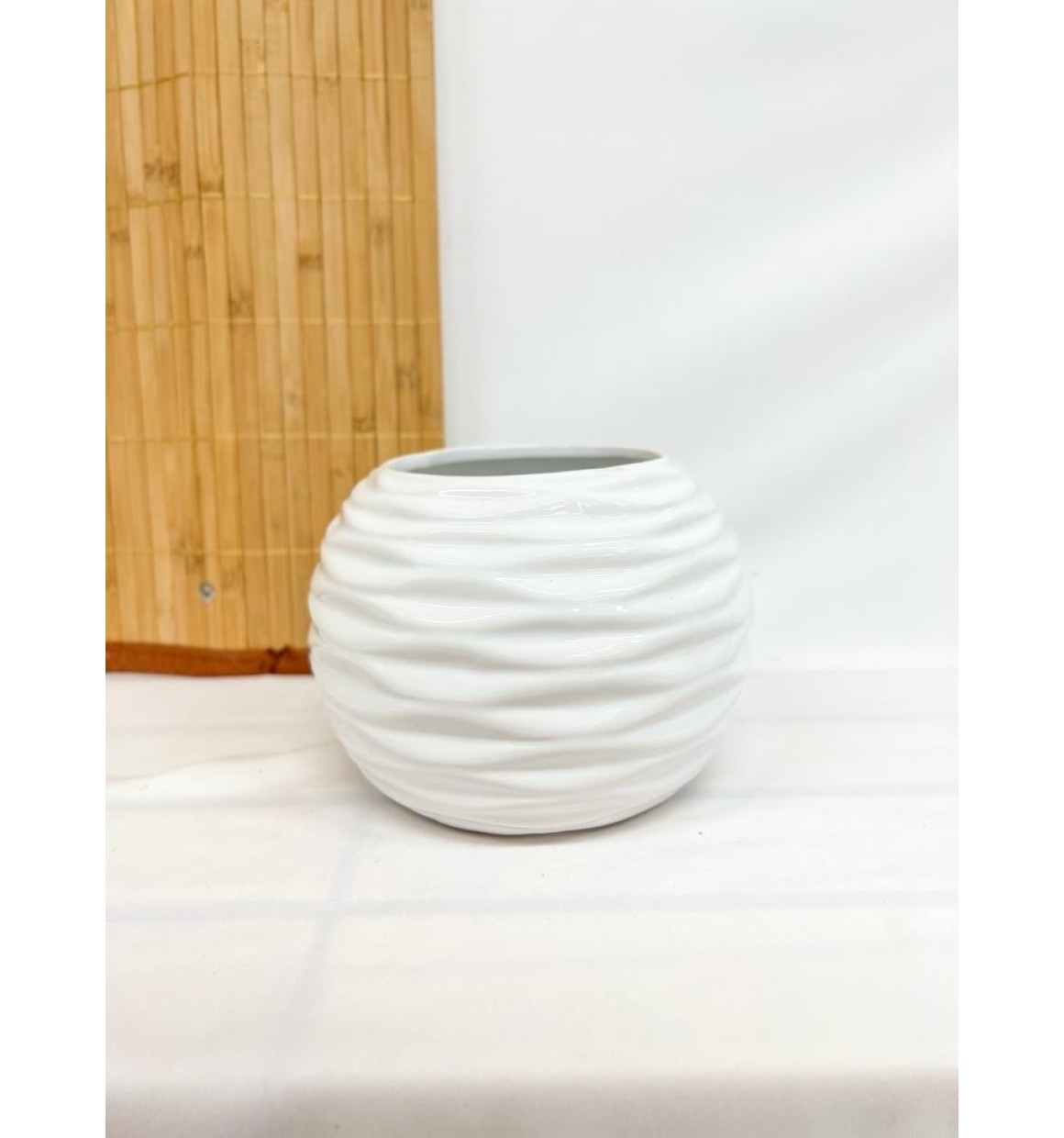 2. Vaso Branco Ondulado Decorativo Cerâmica