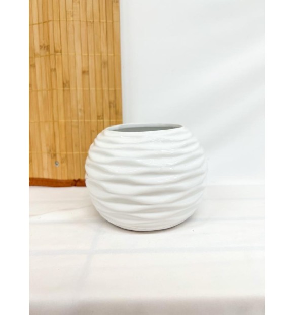 Vaso Branco Ondulado Decorativo Cerâmica