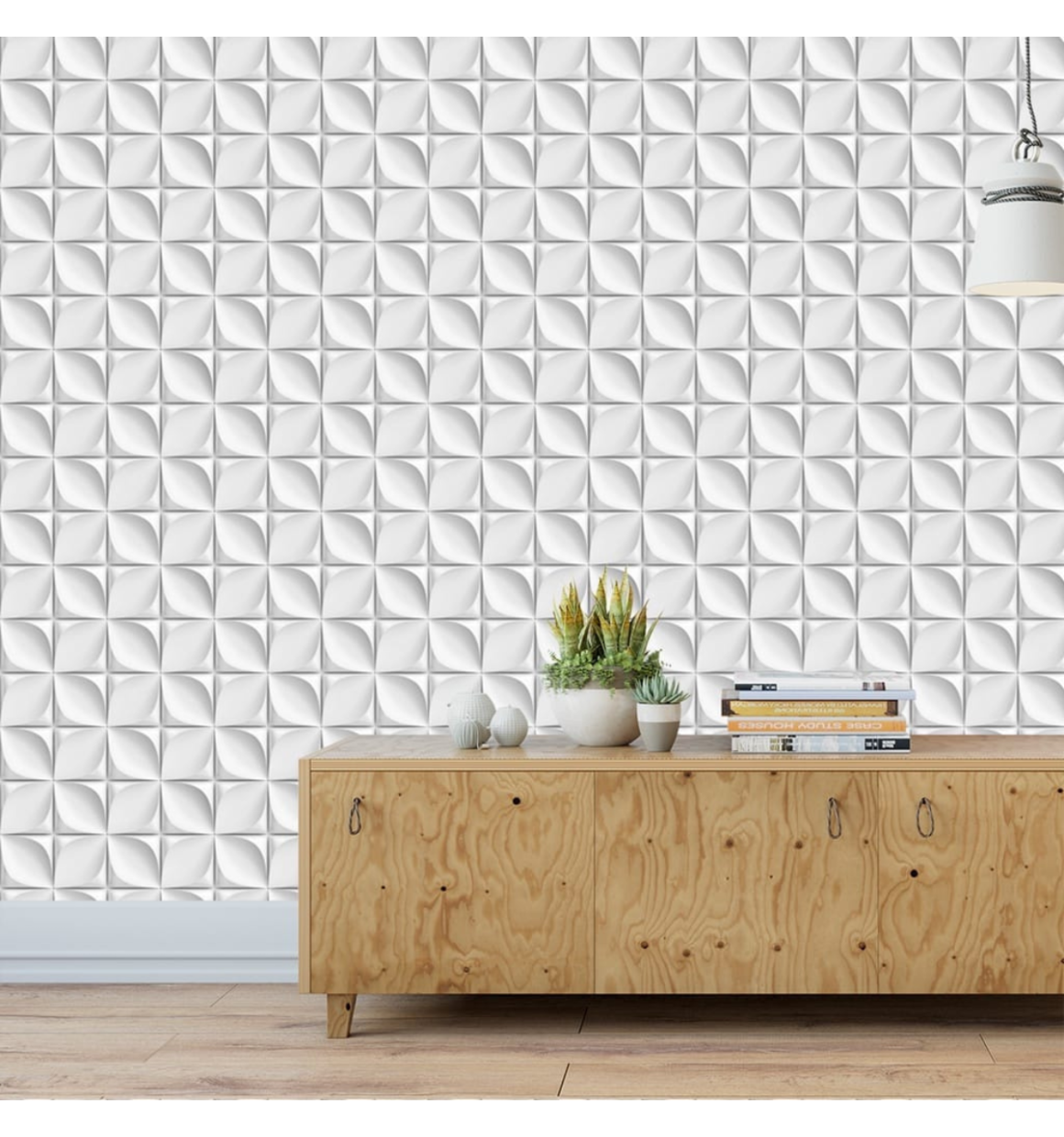 Papel de Parede Autoadesivo 3D Pétala - Branco e Cinza