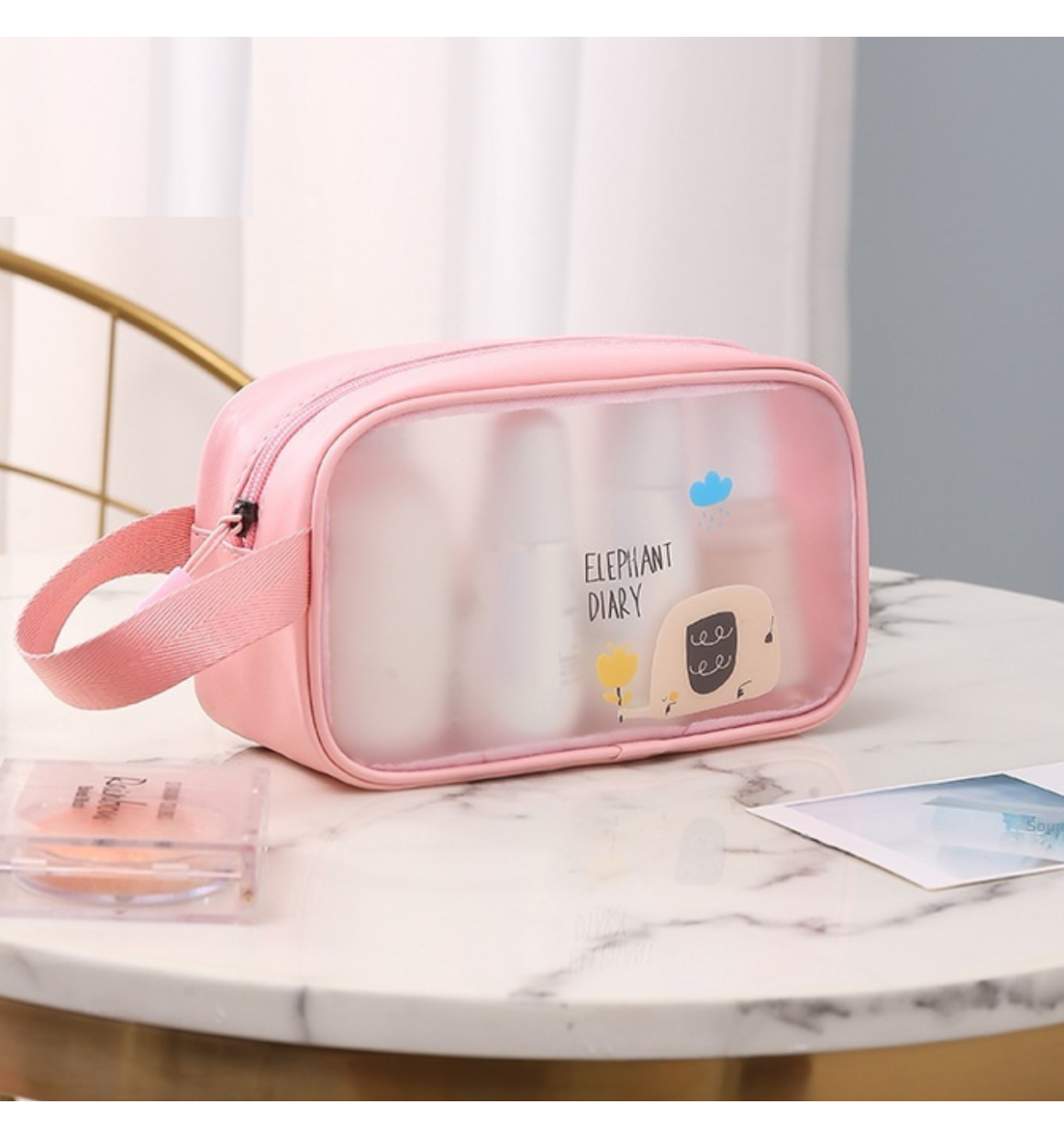 - Necessaire confeccionada em material transparente com ótimo acabamento;