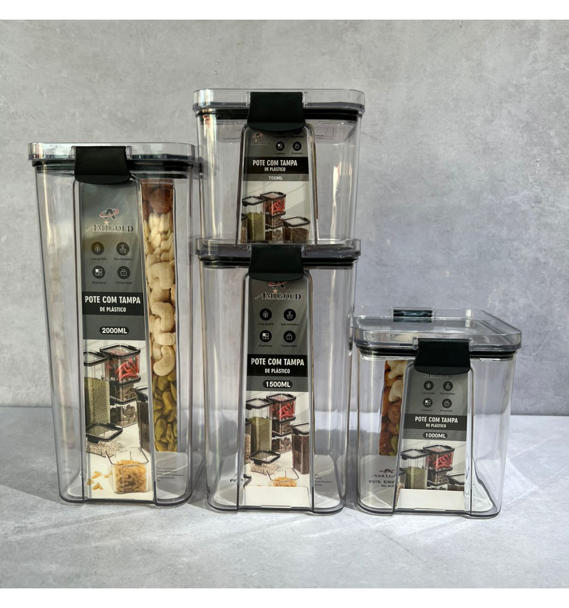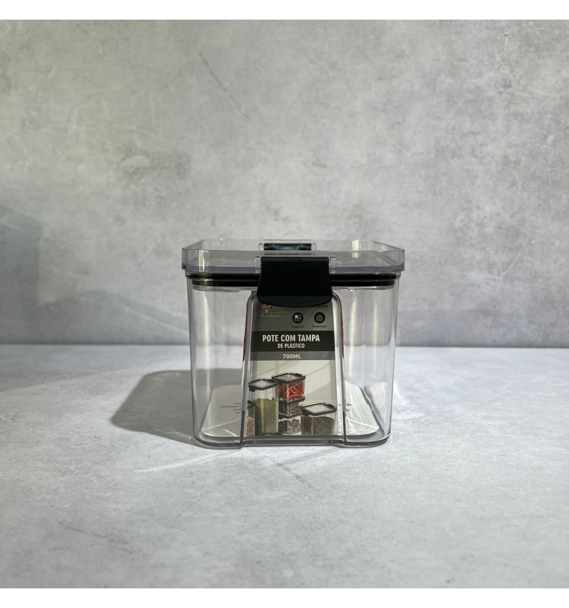 Pote Hermético Quadrado Transparente Com Trava - Preta 700ml Organização Com Estilo, Pote Com Vedação Que Isola Bem E Mantem O Sabor, Aroma E Textura Dos Alimentos Por Muito Mais Tempo, Possui Vedação Com Anel De Silicone E 2 Travas Laterais Que Dão Um Reforço Maior, Pode Ser Usando Para Armazenar Alimentos Secos Como Grãos, Temperos, Biscoitos Como Também Conservas, Molhos Etc., Possui Tampa Que Permite Empilhamento, Deixando Seu Armário Mais Organizando Aproveitando Cada Espaço.