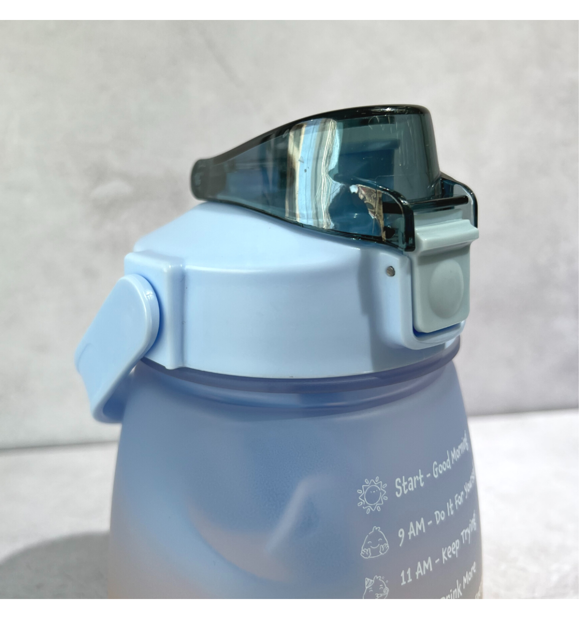 Projetada com marcador do tempo e citações inspiracionais, esta garrafa de água é perfeita para ajudar você se manter motivado para beber água suficiente durante todo o dia. Apresentado com aspecto em degradê e escala de capacidade ajuda você medir sua ingestão diária de água de água com facilidade e claramente. É divertido e fácil para qualquer objetivo de fitness incluindo perda de peso, ganho muscular, controle de apetite e saúde geral.