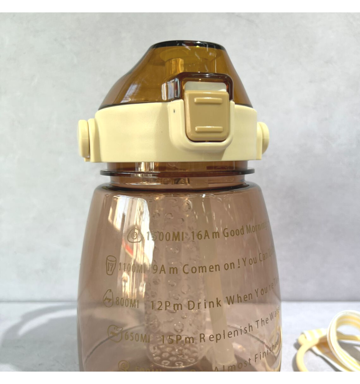 Projetada com marcador do tempo e citações inspiracionais, esta garrafa de água é perfeita para ajudar você se manter motivado para beber água suficiente durante todo o dia. Apresentado com aspecto semitransparente e escala de capacidade ajuda você medir sua ingestão diária de água de água com facilidade e claramente. É divertido e fácil para qualquer objetivo de fitness incluindo perda de peso, ganho muscular, controle de apetite e saúde geral.