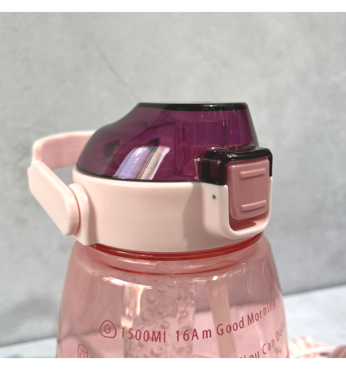 Garrafa Rosa de Plástico com Canudo , Alça e Infusor - 1500ml