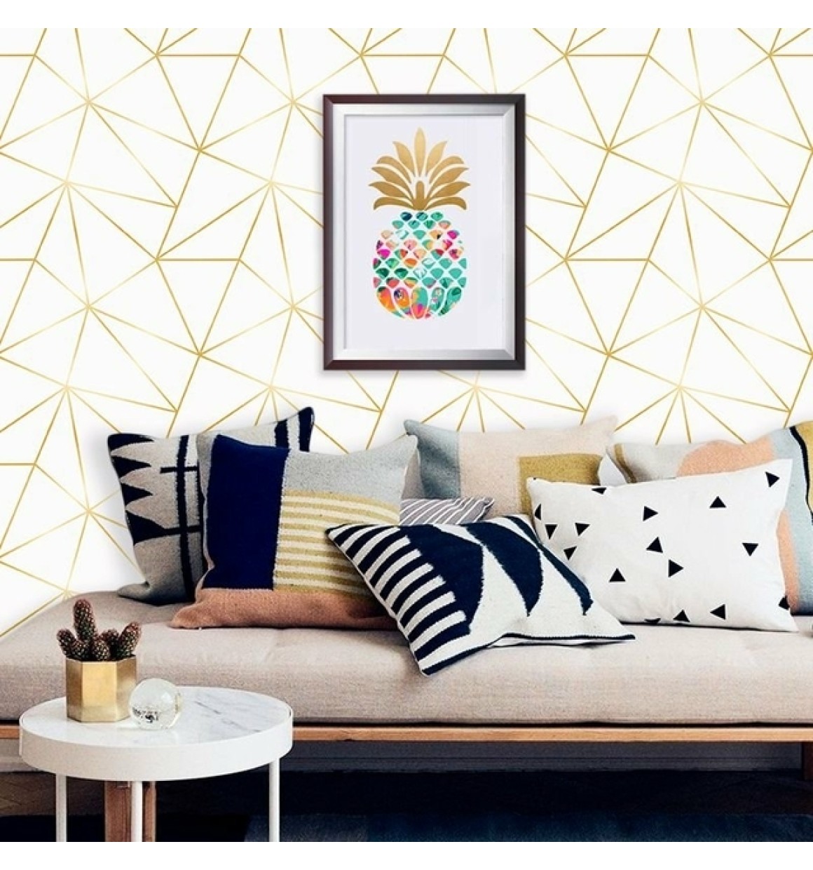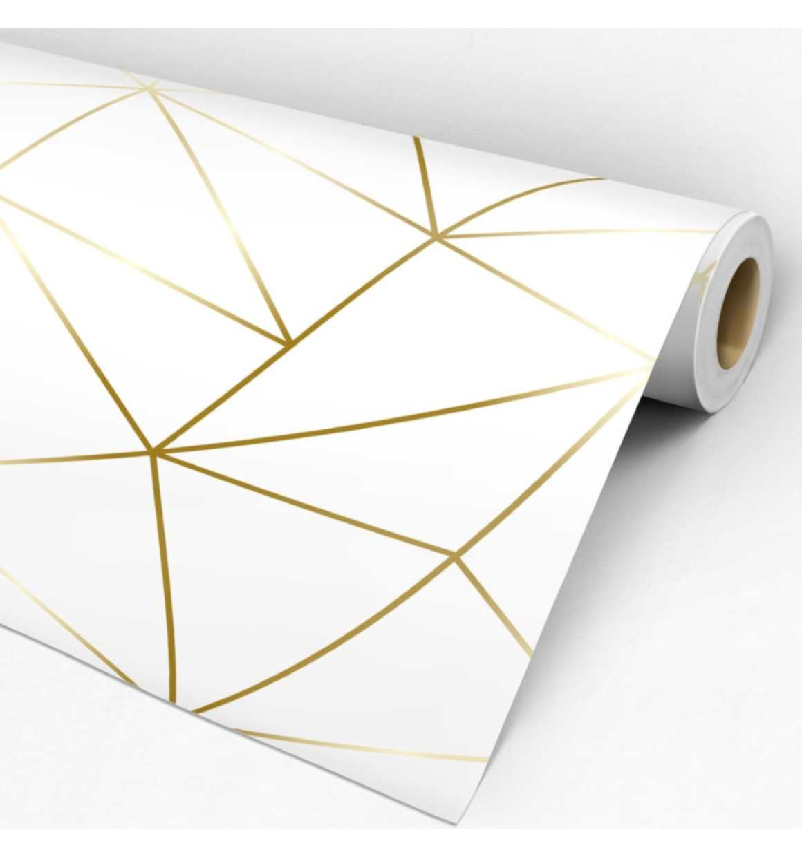 Papel de Parede Autoadesivo Zara Off White com Dourado.