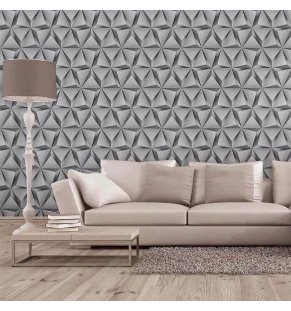Papel de Parede Autoadesivo 3D Cinza com Dourado