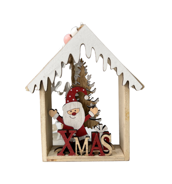 Enfeite para Pendurar Casinha de Madeira com Papai Noel