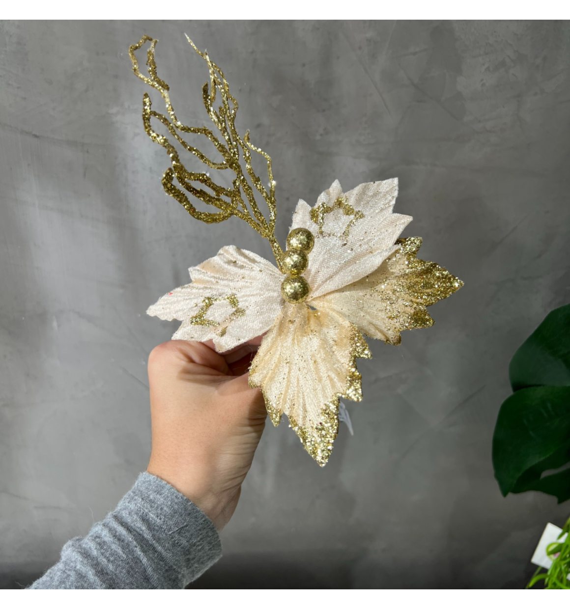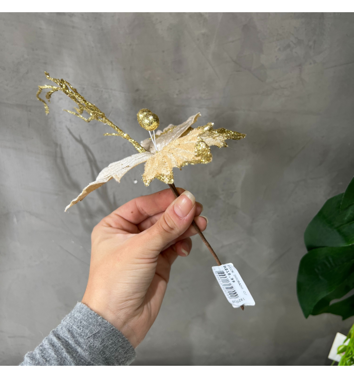 Pick Dourado com Glitter Flores Cabo Curto - P