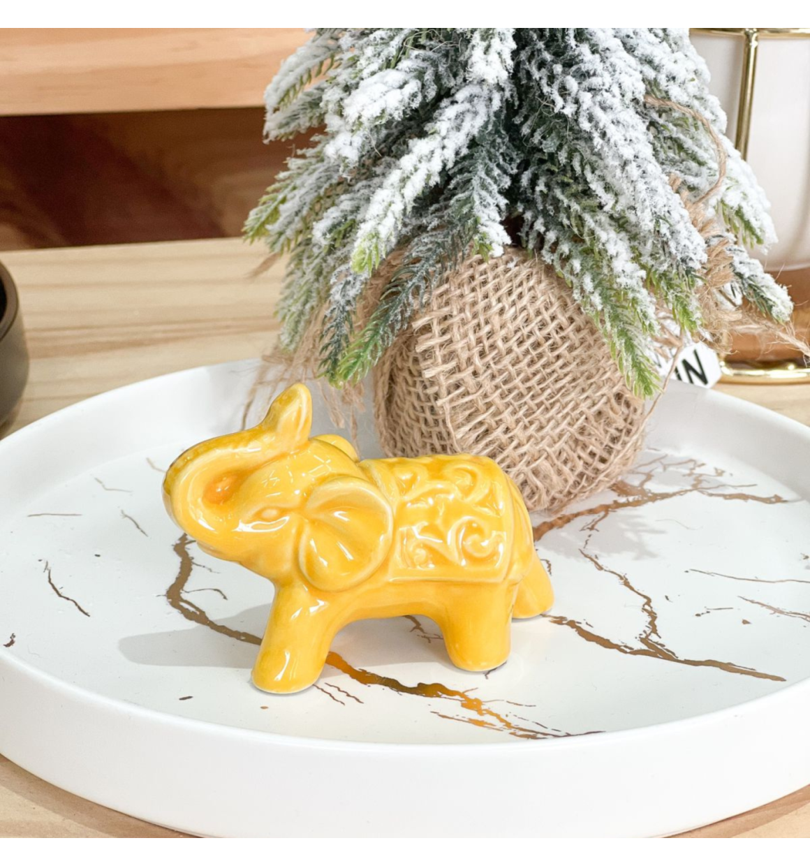 Mini escultura de porcelana em formato de elefante. Símbolo da boa sorte, esse enfeite além de lindo, combina com todos os tipos de decorações e ambientes.