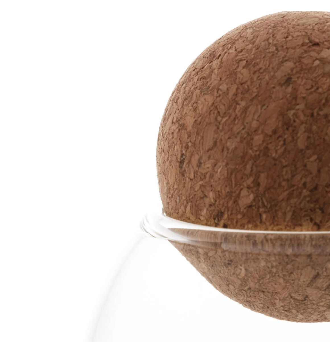 feito de vidro borossilicato de alta qualidade, torna mais fino, mais leve, capaz de resistir a choques térmicos, arranhões e quebras. A tampa redonda de cortiça é feita de madeira natural e no formato de Esfera.