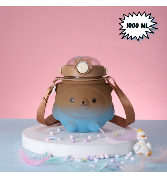Garrafa Squeeze Ursinho Degradê com Adesivos 1000ml - Marrom