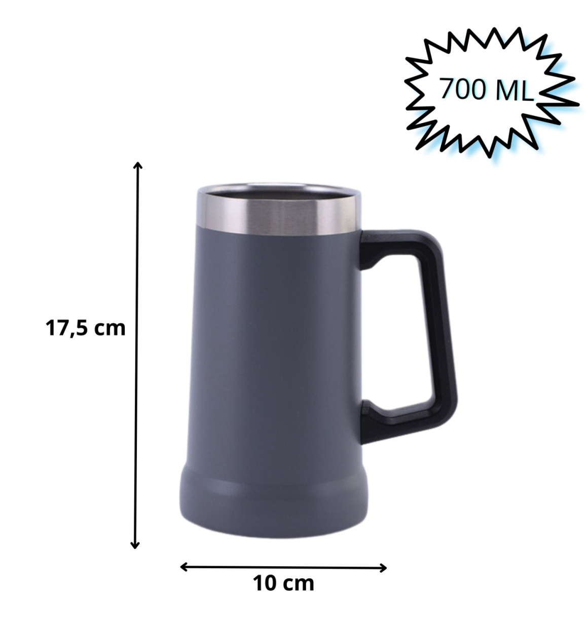 caneca térmica é perfeita para os apreciadores de bebidas na temperatura certa! Ideal para a conservação de bebidas quentes ou geladas por muito mais tempo! Bebidas quentes, a conservação é de até 1 hora. Bebidas geladas, até 5 horas . A caneca térmica dispõe de uma tecnologia especial, a Sua parede dupla em aço inox com isolamento a vácuo, produz uma camada que protege a sua bebida do contato com a temperatura ambiente. Possui uma alça resistente que proporciona mais conforto para o consumo, tem um belo design, é feito de material resistente, as paredes não transpiram, é prática no uso e fácil de limpar.