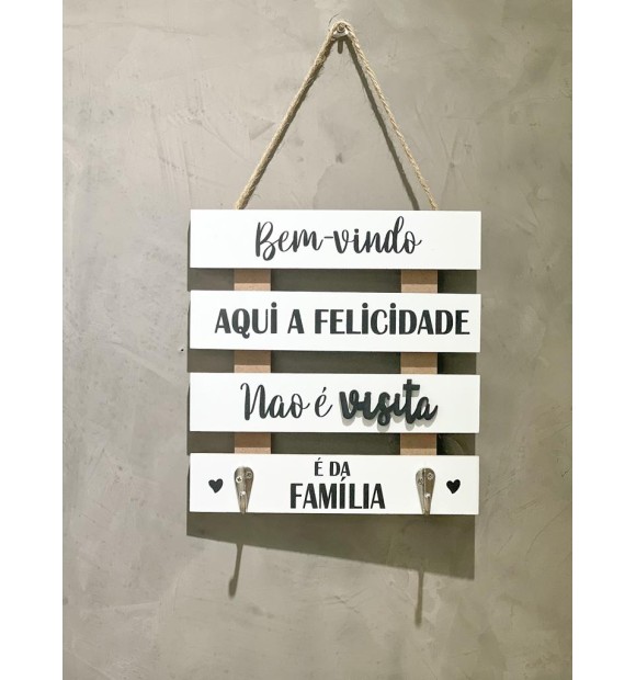 Placa "Bem vindo, aqui a felicidade não é visita, é da familia" de Mdf