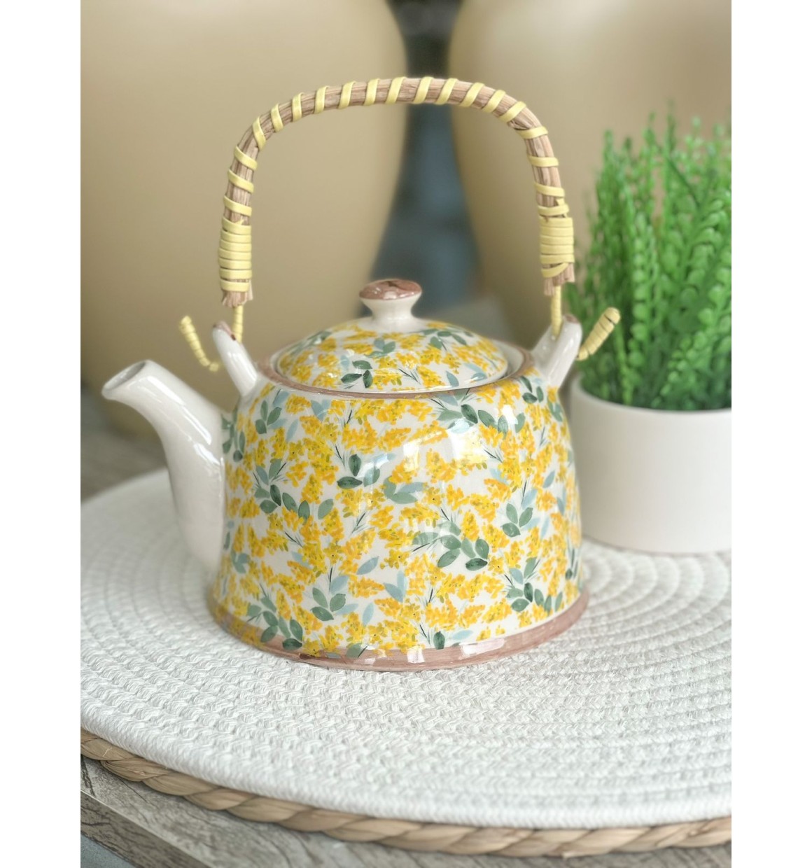 Bule Decorativo de Porcelana Floral  - Amarelo e Verde