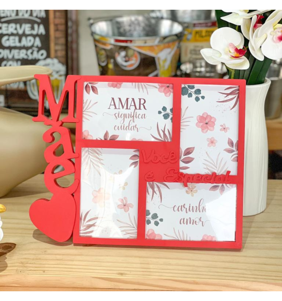 2. Porta Retrato Dia das Mães "Amar significa cuidar" Vermelho