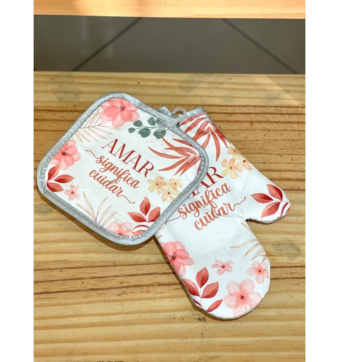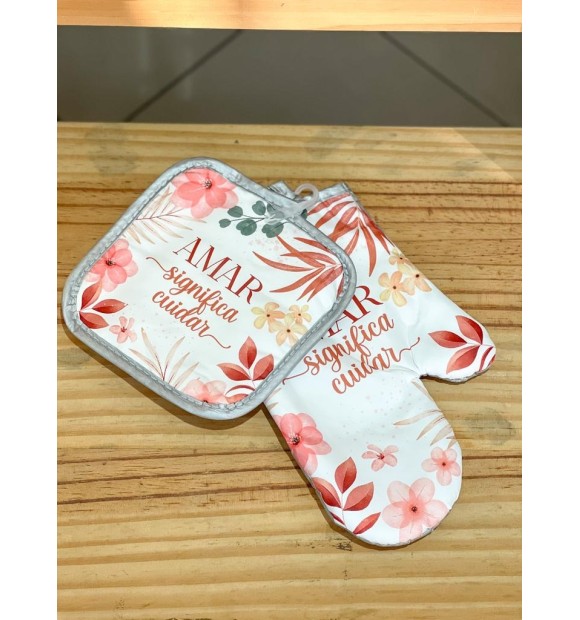 Luva e Suporte Para Cozinha"Amar Significa Cuidar" - 2 Peças