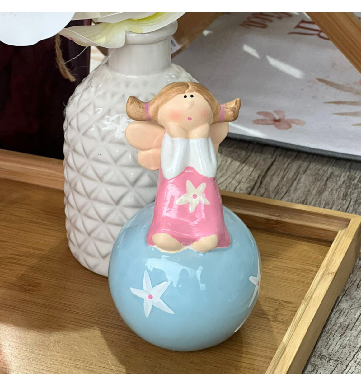 Enfeite de Resina - Anjinha Vestido Rosa Bola Azul