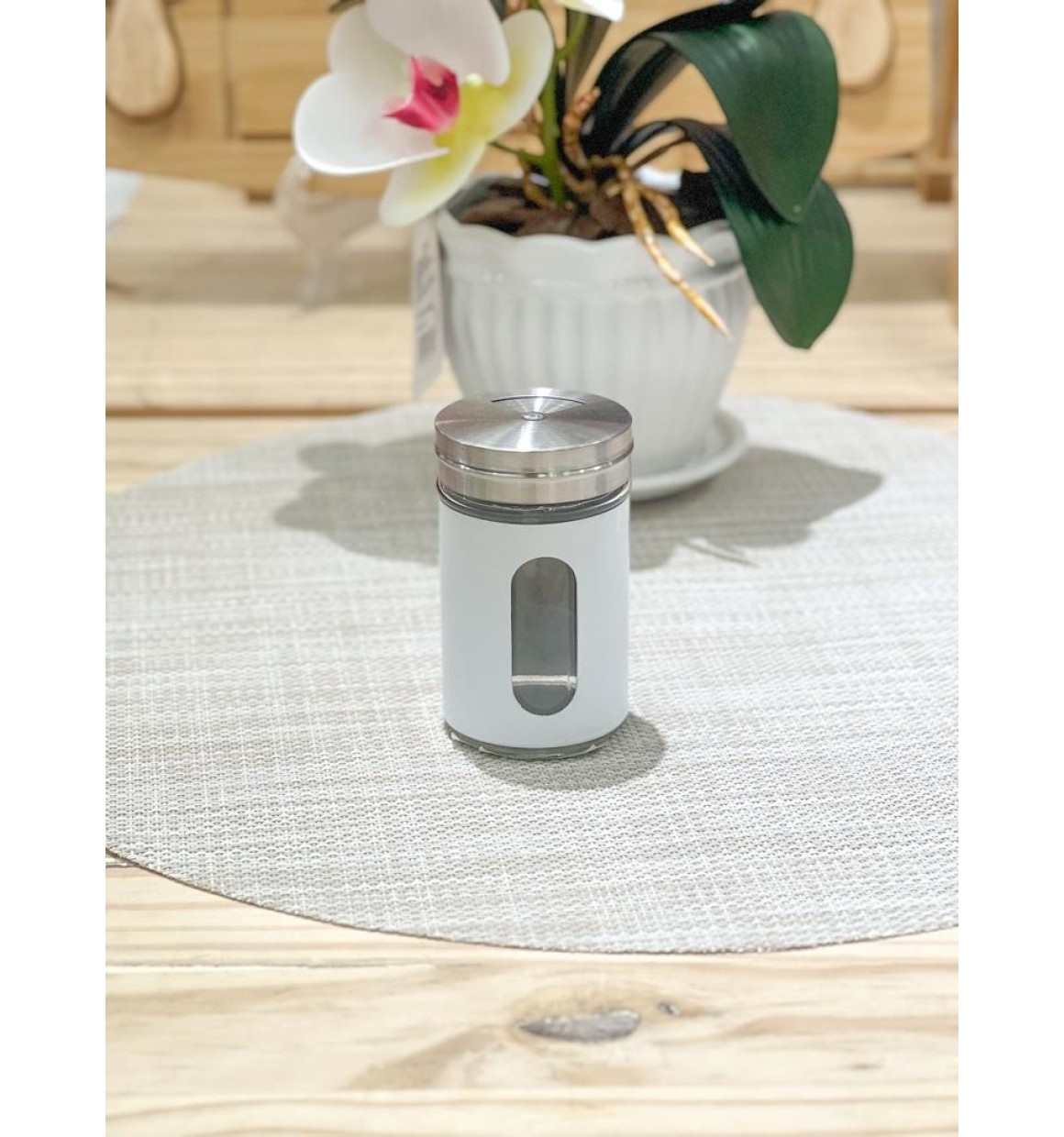 Tampa de inox interna removível, com 3 orifícios sendo grande, médio e pequeno. Permitindo utilizar com queijo ralado, temperos, sal, pimenta.