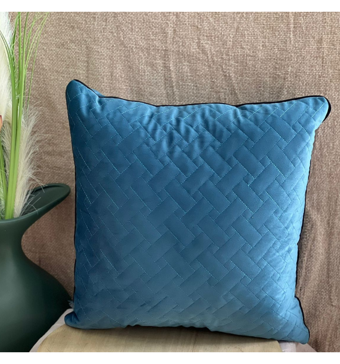 Renove a decoração da sua casa com a Capa de Almofada Azul em Veludo com Borda Preta ! Com seu acabamento suave e elegante, essa capa é perfeita para trazer conforto e estilo para o seu ambiente.