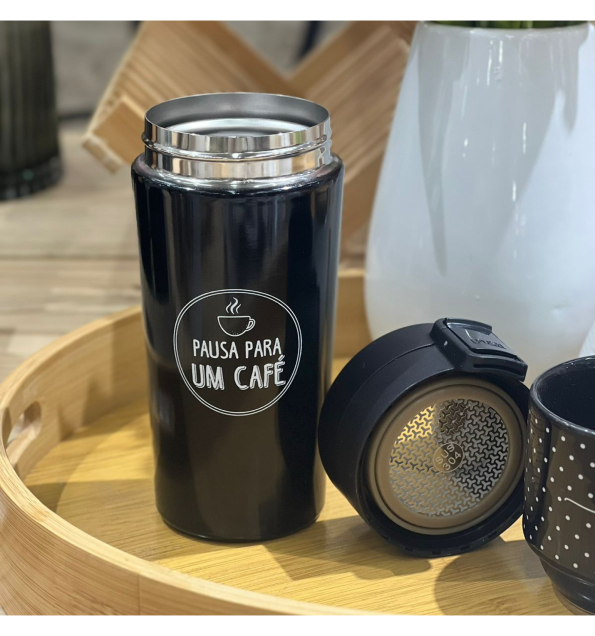 Copo Térmico Preto " Pausa para um Café " 300ml
