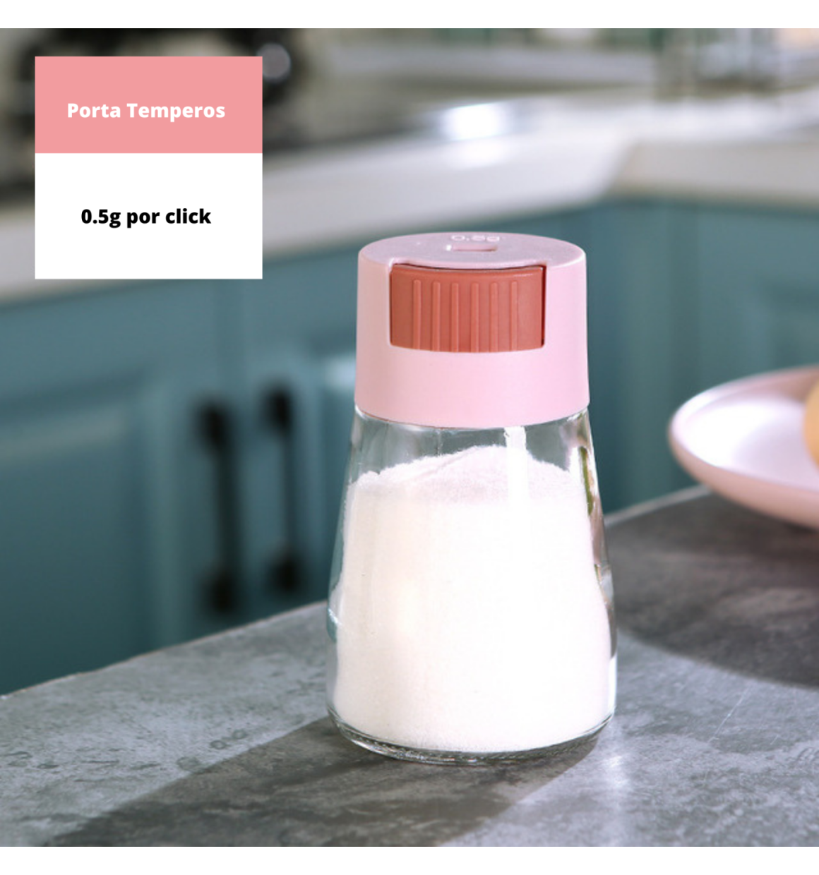 A combinação perfeita de saleiro e dispensador traz comodidade para sua cozinha. Pressione para quantificar a quantidade de sal, 0,5 g de sal de cada vez, controle rapido e facil , torne a comida mais deliciosa e mantenha uma vida saudável. O dispensador é feito de vidro de alta qualidade, que pode manter os temperos que você saboreia frescos.