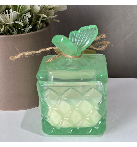 Vela Aromática com Castiçal Verde e Tampa com Borboleta