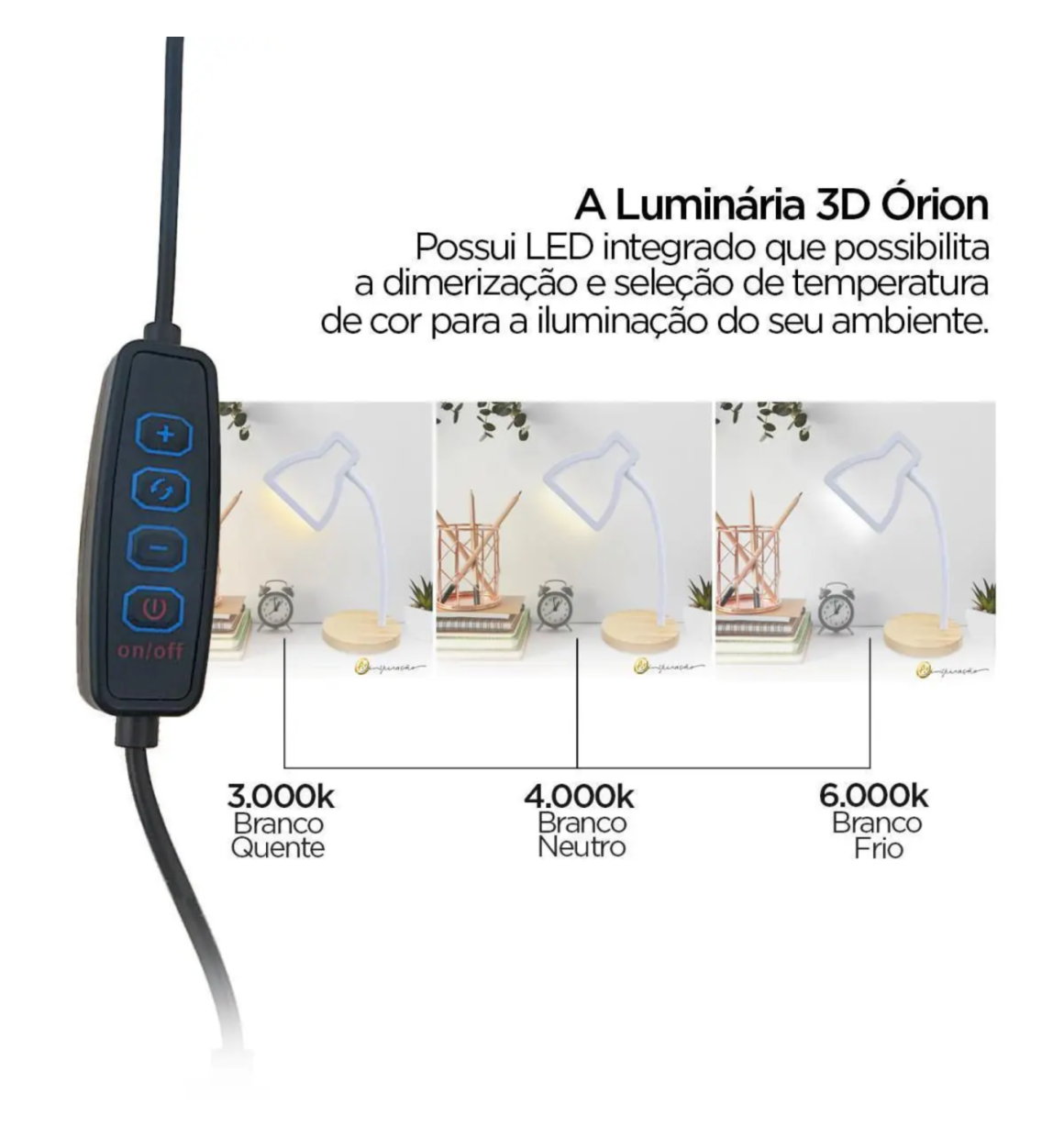 Luminária - Base em Madeira - Haste Articulada - USB - 4 Funções Led - Botão Diminuição de Led Medidas: 41,5x14.8cm Composição: Plástico